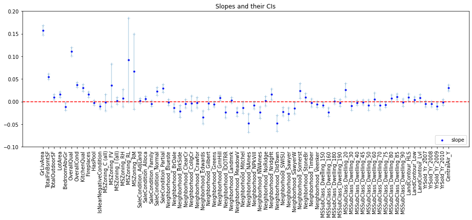 - By looking at the predictor slopes and their confidence intervals, we see that some encompass 0.